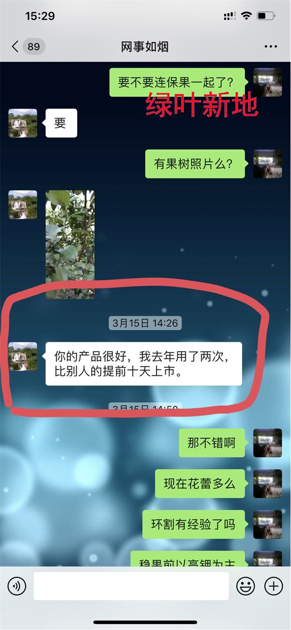 赵老板是用了什么让沙糖桔着色快人一步呢?赵老板说他去年是喷了两次绿叶新地果润。赵老板还说这个产品自己用了之后,发现果实着色确实快,果润是个好产品。赵老板还表示来年还会继续用。