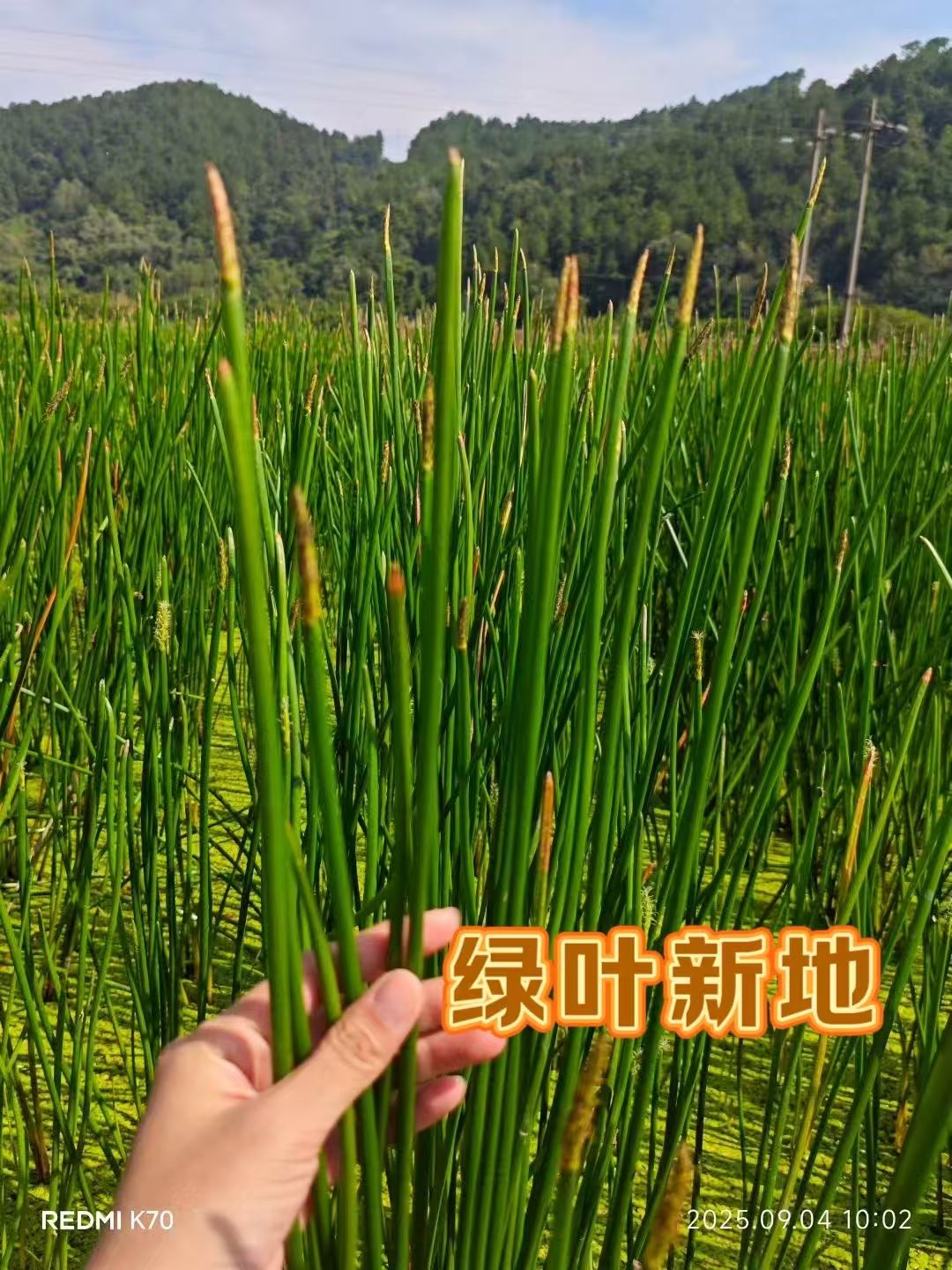 2025年9月4日,绿叶新地技术员回访了荔浦新坪凤岗廖老板家的马蹄田。眼前的景象令人眼前一亮,廖老板家的马蹄苗绿意盎然,分株茂盛,苗茎粗壮,远远望去就像一片生机勃勃的绿色海洋。廖老板自豪地说:“目前来看,我的马蹄苗是村里长得最好的,周边田种的都没有我家的好!”